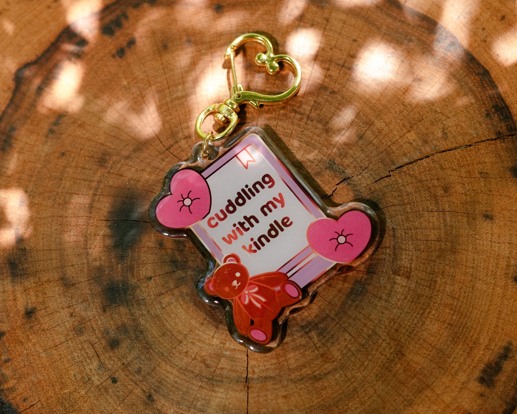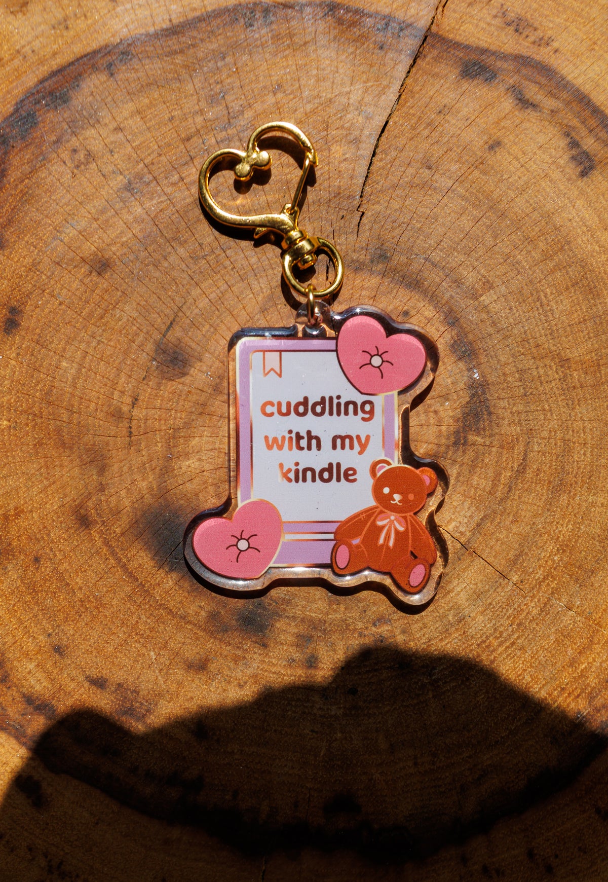 "Cuddling With My Kindle" Keychain/Kindle Charm