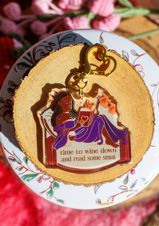 "Time to Wine Down and Read Some Smut" Keychain/Kindle Charm